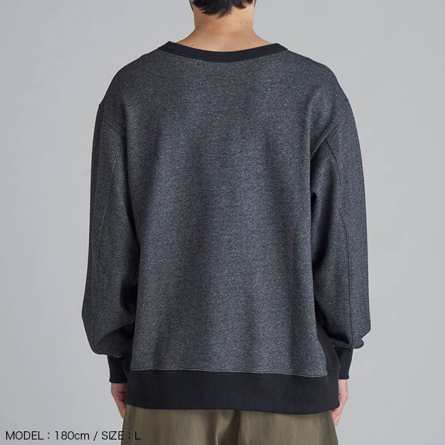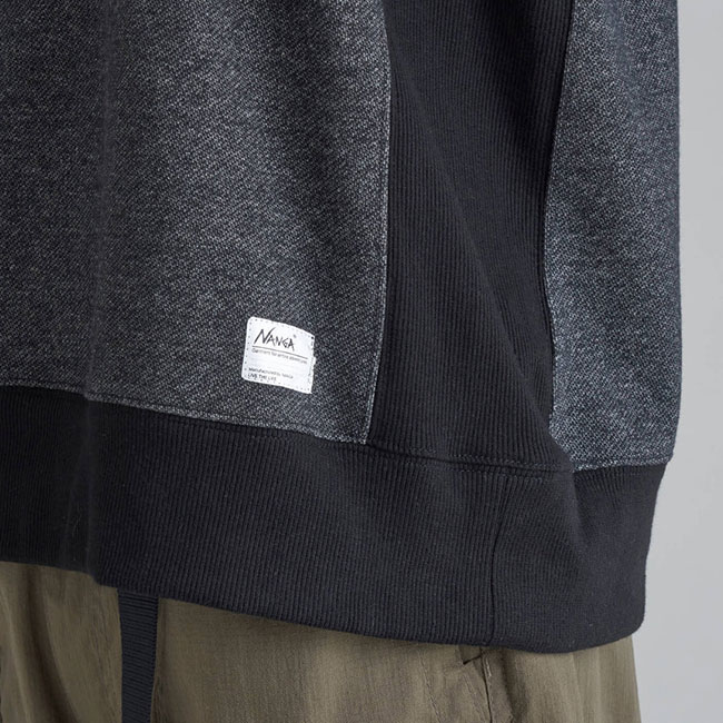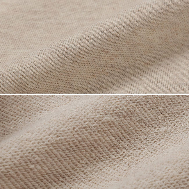 スウェット生地は裏毛、袖や脇、襟は伸縮性に富んだリブにすることで、体を優しく包みます。