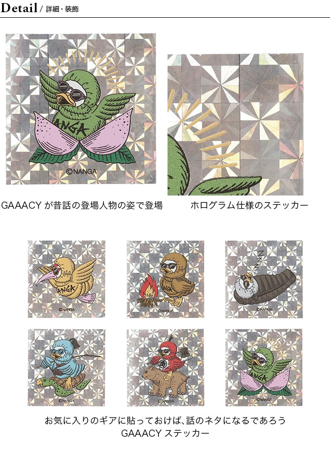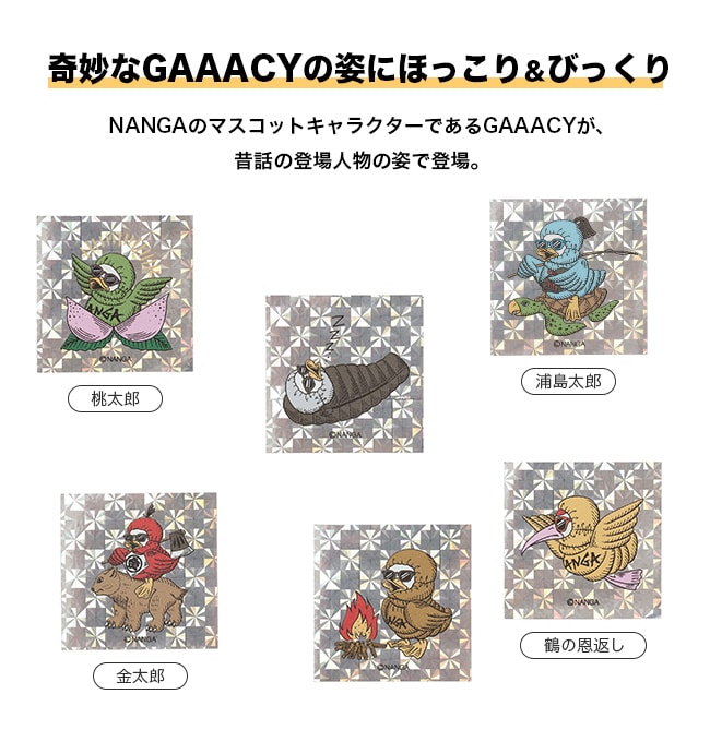 NANGAのマスコットキャラクターであるGAAACYが、昔話の登場人物の姿で登場する新しいホログラム仕様のステッカー。