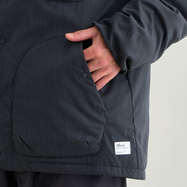 ナンガ独自の難燃素材でありながら、柔らかな着用感と耐久性を兼ね備えた、ヒノックリップストップシリーズのインナーダウンカーディガン。コットンライクな見た目で、アウトドアスタイルはもちろんのことカジュアルスタイルにもぴったり。