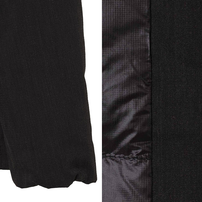 アウターとしては、ダウンステッチを表生地に出さない事で、アウターとしても着やすくなっています。