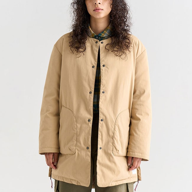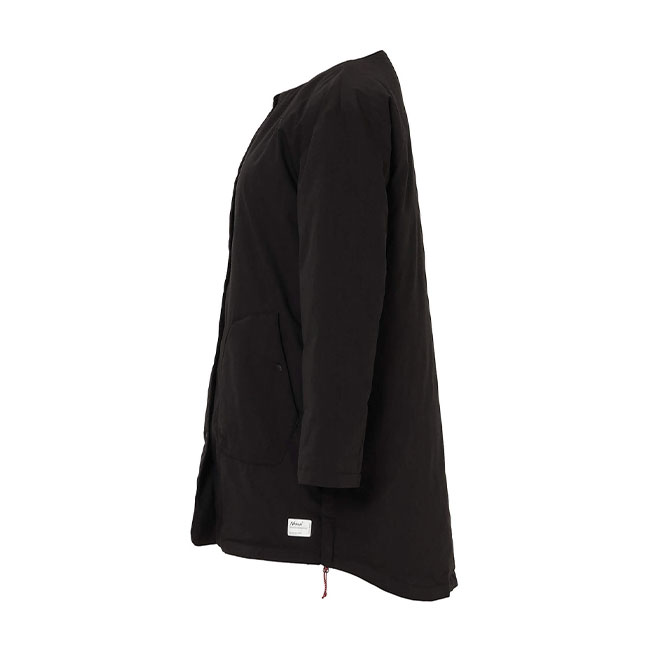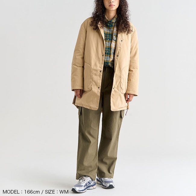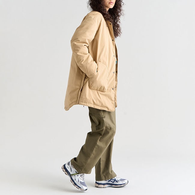 通常のインナーダウンよりも長めの着丈でヒップが完全に隠れる、ハーフコートのような着丈感で、保温性もUP。