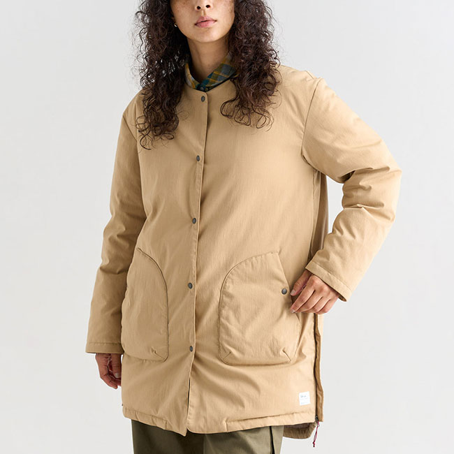 ナンガ独自の難燃素材で、柔らかな着用感と優れた耐久性のヒノックリップストップを使用し、女性のシルエットに合わせたインナーダウンカーディガン。ナチュラルなストレッチ性、弾力性を持たせた生地で、常に快適な着心地を保ちます。