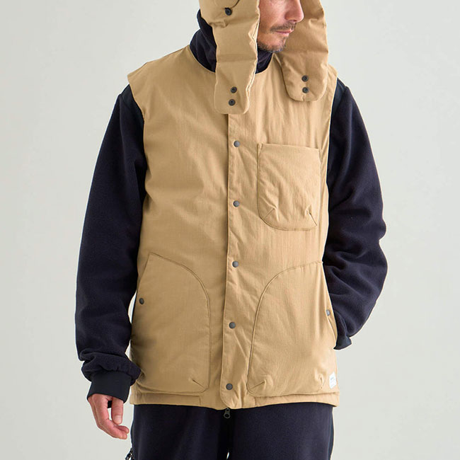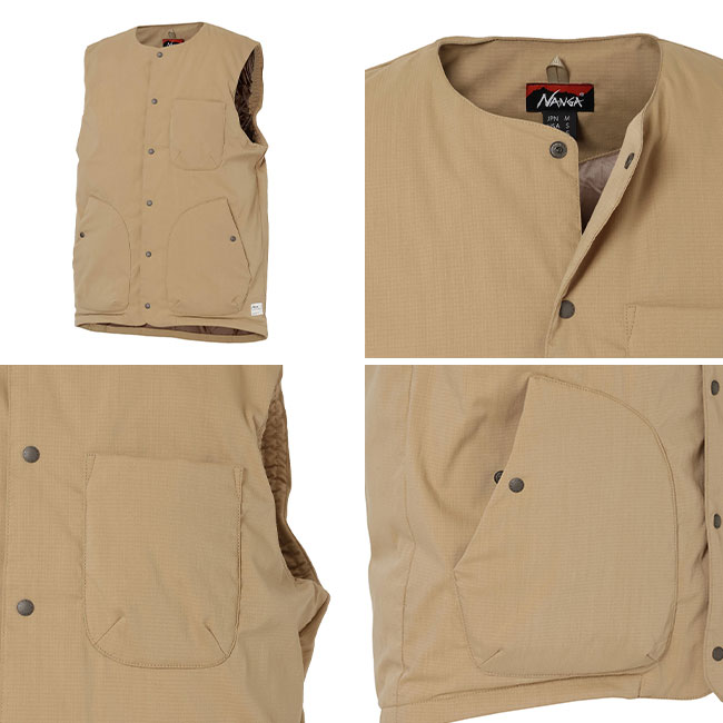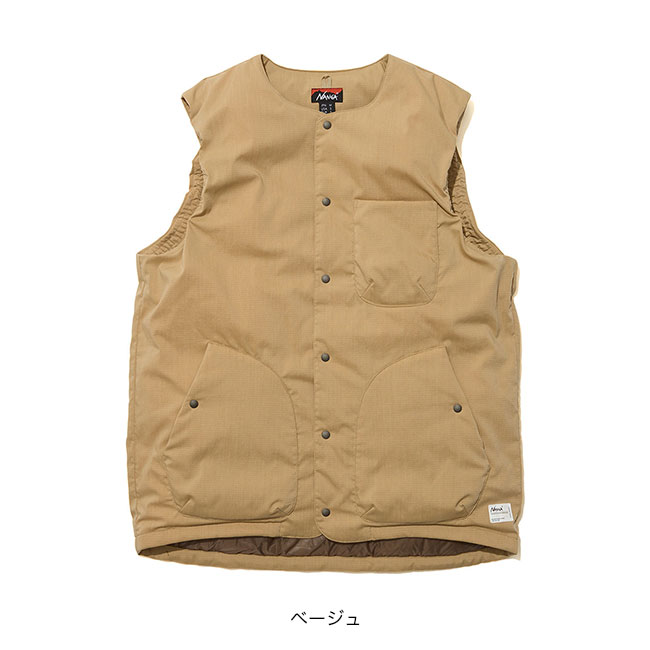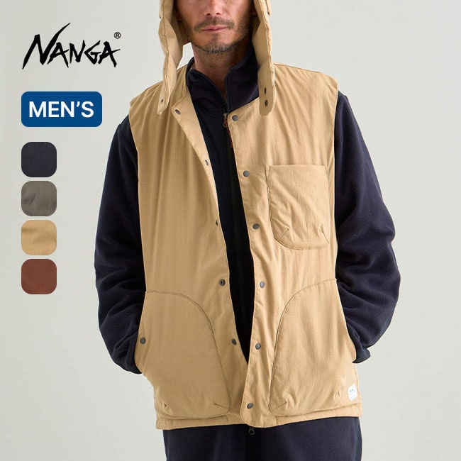 ナンガ独自の難燃素材でありながら、柔らかな着用感と耐久性を兼ね備えた、ヒノックリップストップシリーズのインナーダウンベスト。コットンライクな見た目で、アウトドアスタイルはもちろん、カジュアルスタイルにもぴったり。