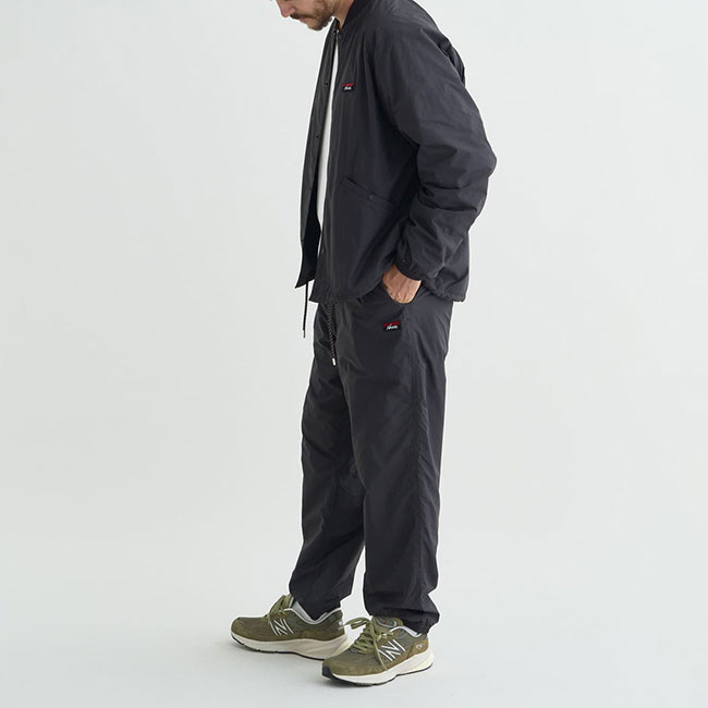 一般的なナイロンパンツは、ナイロン特有のテカテカとした光沢感がありますが、こちらのパンツは、マットで落ち着いた印象のため、普段もコーディネートにも馴染みやすい、取り入れやすくなっています。
