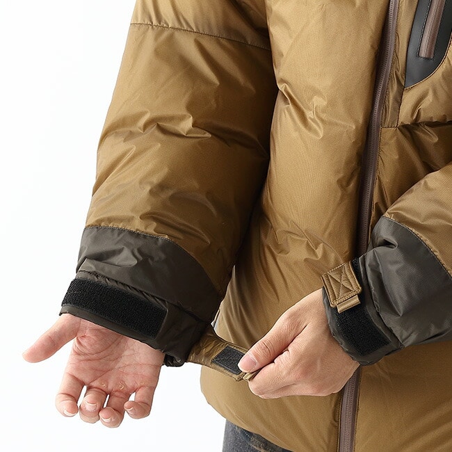 また、袖口のベルクロ、裾のドローコードでも温度調整や防水防風性能を向上させることができます。