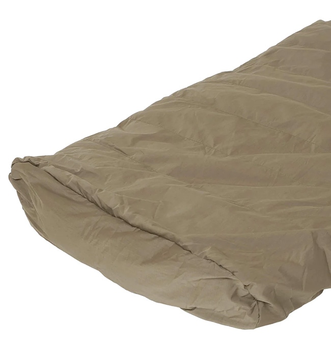 上面には保温性が高く軽い ダウン、体重によって潰れてしまう下面には化繊綿(シングルキルト構造)と合理的な構造となって います。