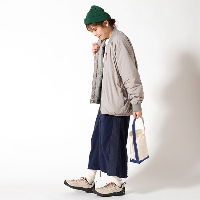 さらに、フロントはダブルZIP仕様で、インナーとのレイヤードを楽しみながらスタイリングの幅を広げることができます。