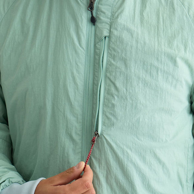 胸ポケットと腰ポケットにはコンシールファスナーを採用し、シンプルでスマートなデザインに仕上げました。