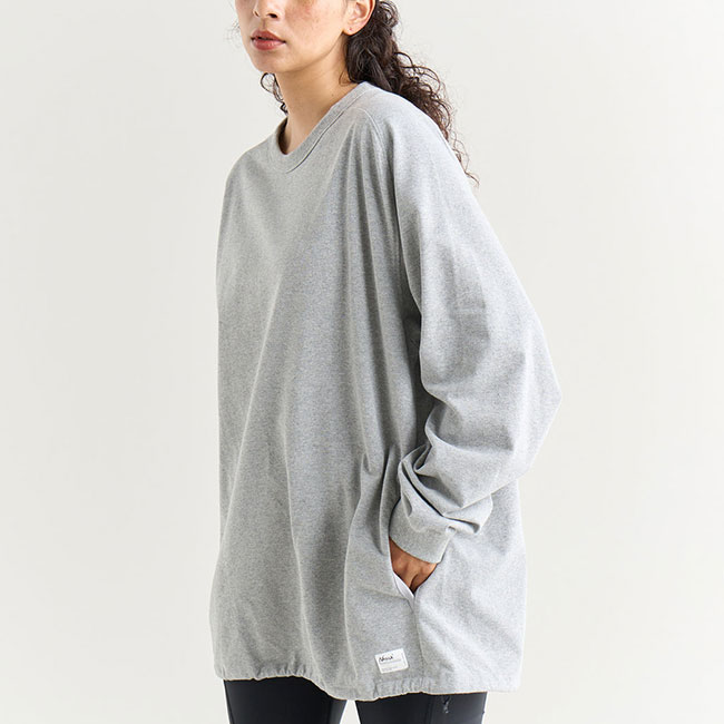 シルエットを変えて楽しめるロングスリーブティー。ショートパンツ、ロングパンツなど合わせるパンツによって、裾にドローコードをでシルエットを変えて、コーディネートを楽しんでいただけます。