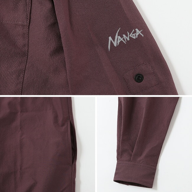 通気性、吸汗速乾性を兼ね備えた軽量、ハイテク生地ドットエア。特殊な織物構造で、通気孔を作る事により通気性、吸汗速乾性、軽量性を作り出しています。ストレスフリーな着心地に。肌離れも良く、素肌に着てもべた付かず、快適に着用できます。