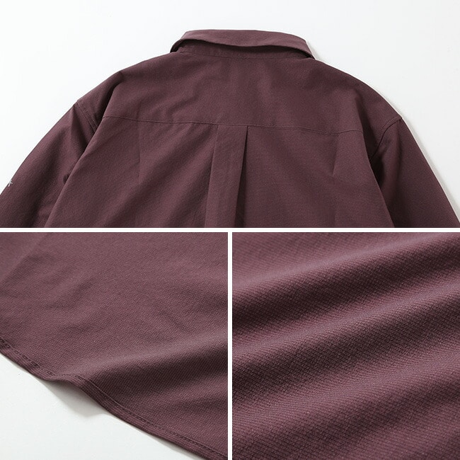 特殊な織物構造で、通気孔を作ることにより通気性、吸汗速乾性、軽量性を生み出し、べた付かず清涼感を感じられます。