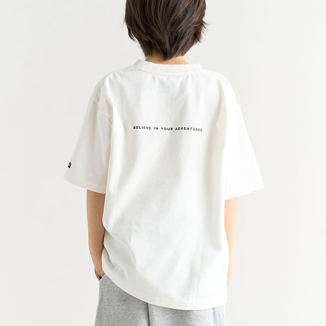 お子様一人での着用はもちろん、同シリーズの「ECO HYBRID BOX LOGO LOOSE FIT TEE」とのリンクコーデで、家族みんなのスタイルに一体感を。
