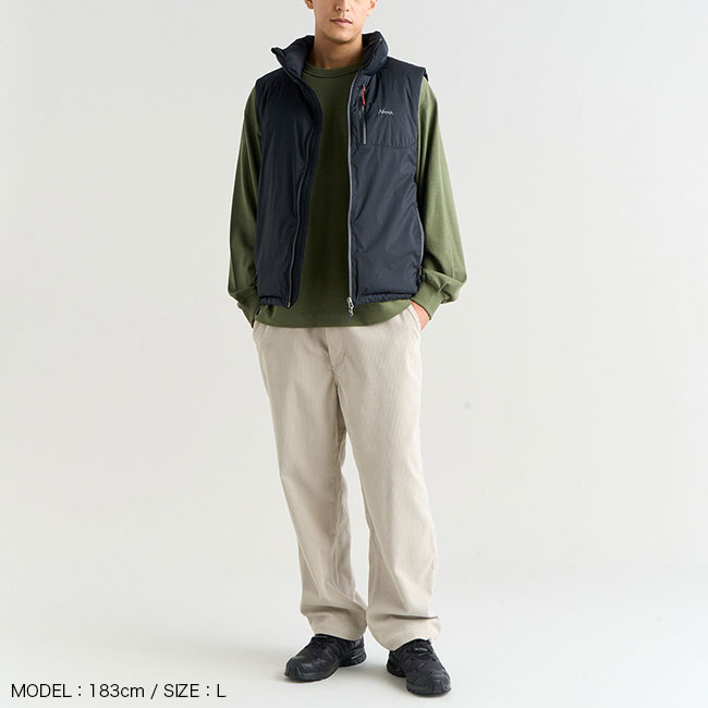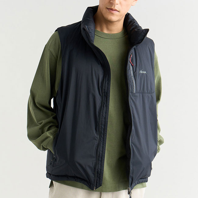 "いつでもどこでもちょうどいい"をコンセプトに作られたナンガ定番の万能ダウンウェア、AURORA TEX DOWNシリーズから展開するダウンベスト。襟はネックを高めにし、首元の保温性も確保しつつ、腕の可動域を広げるベストタイプはカットソーからシャツ、パーカーまで幅広く着回すことができ、秋から春まで幅広いシーズンの着回しに対応。