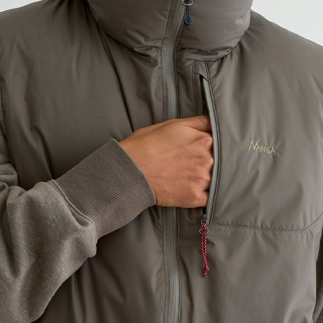 細かなディティールとして止水ファスナーで冷たい風や雨の侵入をしっかりと防ぎつつ、ダブルファスナー仕様のため、体温調節やシルエットを変えて着こなしも楽しめます。