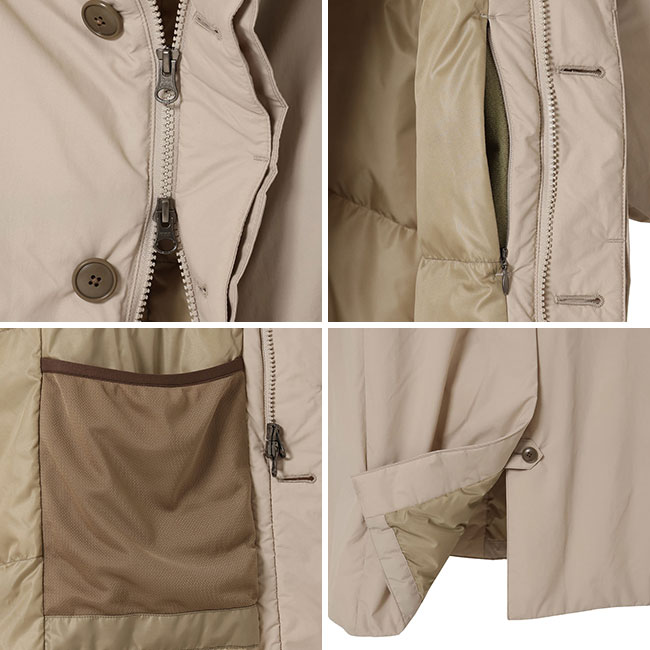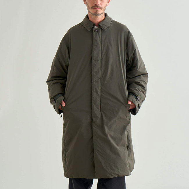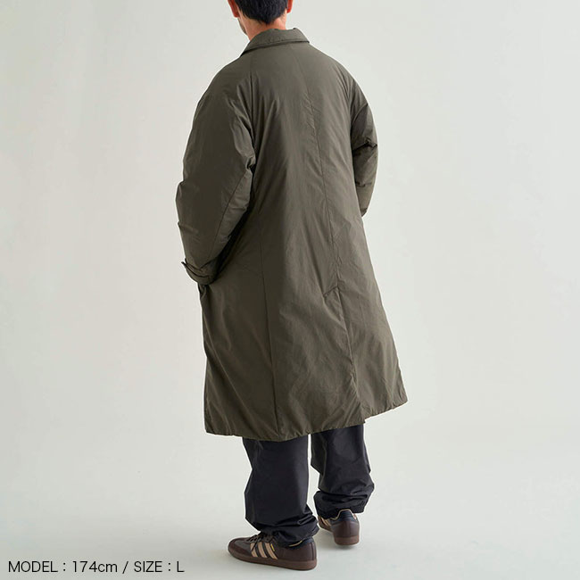 全体的にミニマムな印象の仕様になっており、シンプルなデザインでオンオフ問わず使える実用的なコートに仕上がっています。