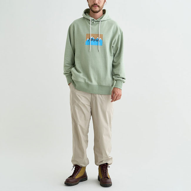 定番のNANGAのマウンテンロゴを、イラストレーターのジェリー鵜飼氏がアレンジしたグラフィックのプリントフーディー。さらに、30TH ANNIVERSARY限定アイテムでスペシャルなナンガマウンテンロゴTに仕上がっています。