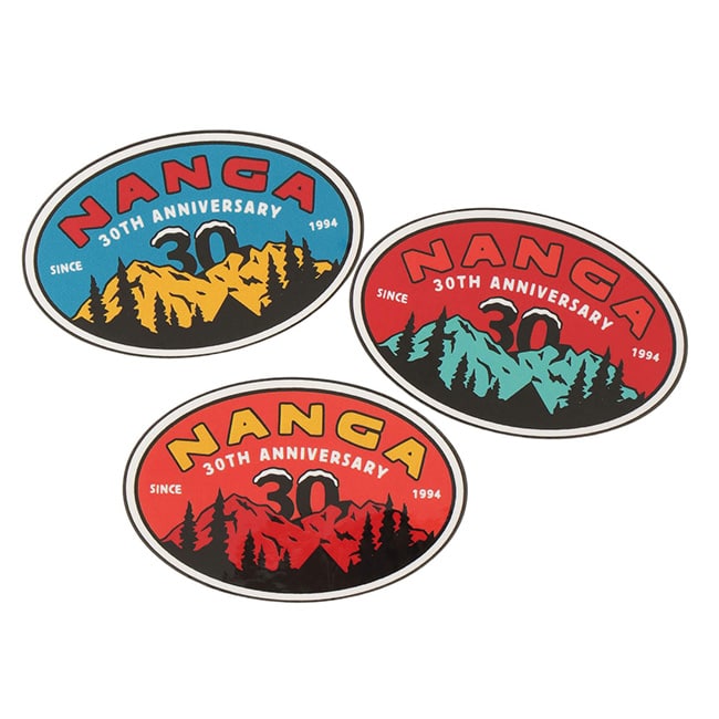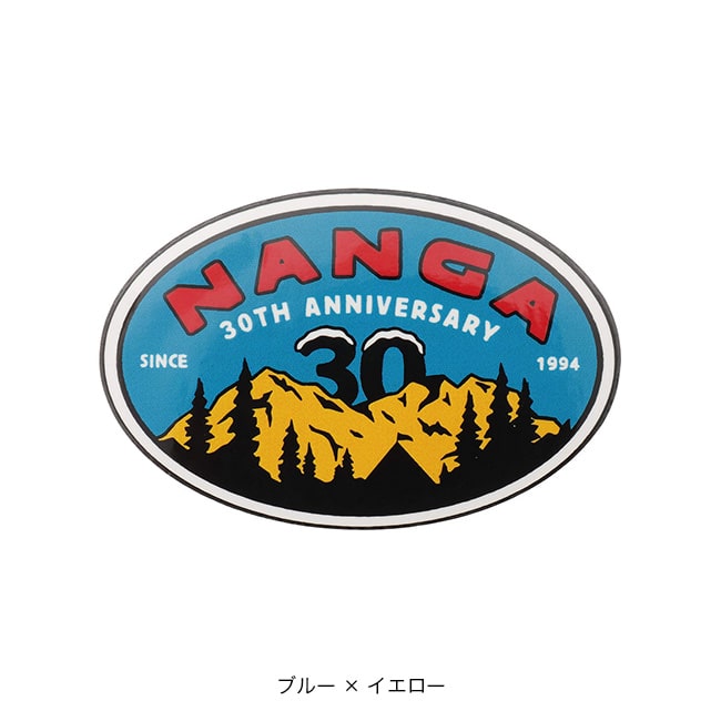 NANGA 30周年を記念してアウトドアワッペンをソースに作成したオーバル型ステッカー。それぞれカラーによって山のカラーも変更しています。