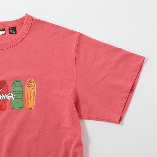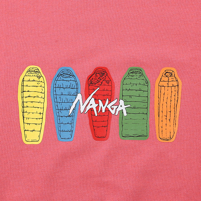 イラストレーター HIROAKI USHIODAさんが描いた、ナンガを象徴するスリーピングバッグ(寝袋)を、カラフルなプリントで表現。ブランドのアイデンティティを遊び心あふれるアートで描いた、ナンガファン必見の一着です。