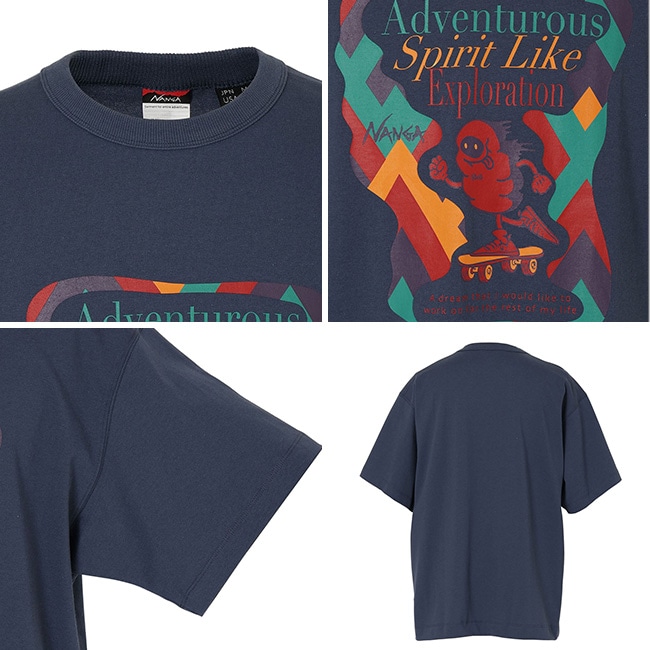 NANGAのアイコンでもある寝袋をモチーフにしたキャラクターがスケートボードで駆け抜ける疾走感の溢れた1枚。自然と調和したユニークなアートワークで注目を集めるカールデザインスタジオが手がけ、「Adventurous Spirit Like Exploration」というメッセージがブランドの理念を表現しています。