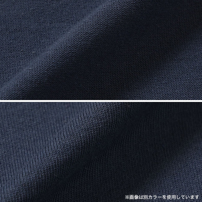 また、クルーネックはフライス生地でバインディング仕上げを施し、長く着てもヨレにくい仕様に。