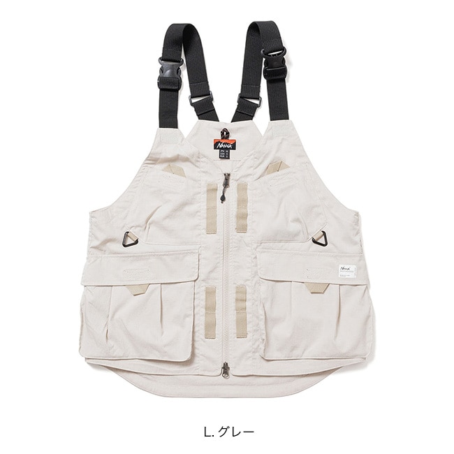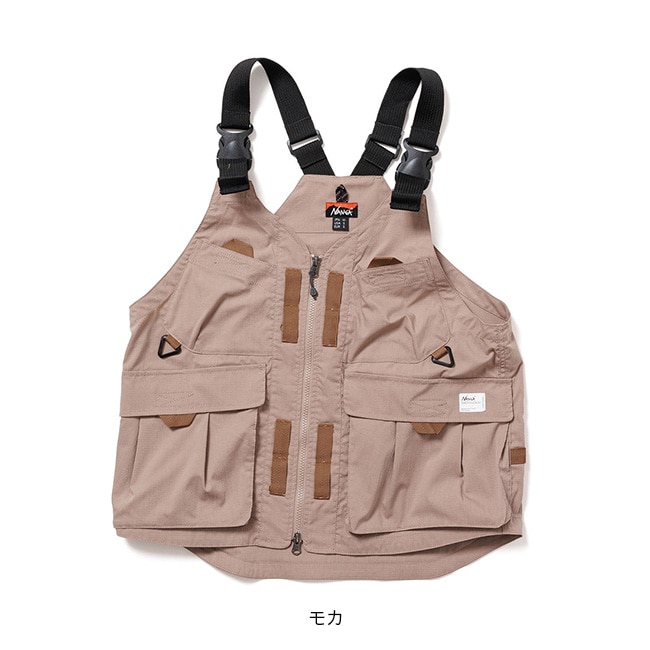 アウトドアやフェスシーンでのギア携行を想定して設計された、HINOC RIPSTOP UT VEST。NANGA独自の難燃素材『ヒノックリップストップ』を使用し、焚き火やBBQといった火の近くでも安心感を持って着用できるユーティリティベストです。