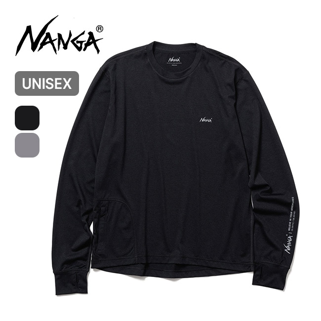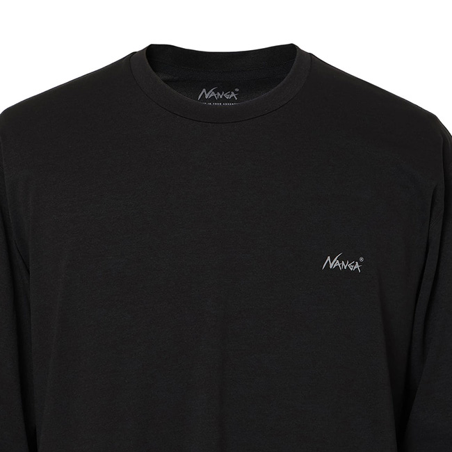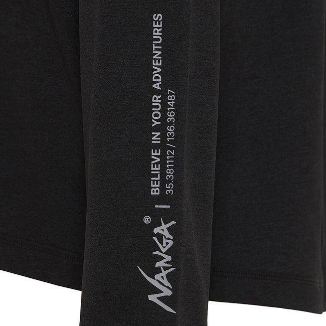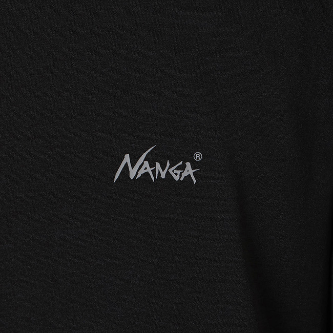 左胸にはシンプルなNANGAロゴ、左袖にはナンガのタグラインをプリント。