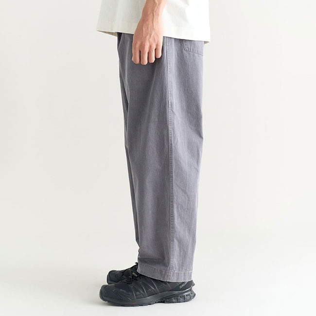 「HOLIシリーズ」のMOTIVE PANTSは、穿く人の目的に自然と寄り添う、“日常にちょうどいい”一着。ジーンズのような感覚でラフに穿ける一方、コットンダンプ生地に顔料コーティングを施すことで、独特の風合いと洗いざらしたような表情をプラスしています。