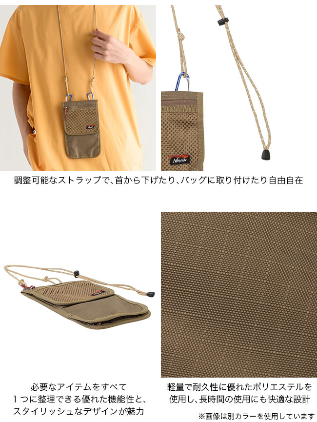 メッシュポケット:視認性が高く、小銭や鍵の収納にも便利。