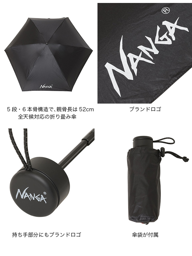 ナンガらしい機能性と軽量性を兼ね備えた、全天候型の折り畳み傘。遮光・遮熱・UVカットに対応した高機能生地を採用し、雨傘と日傘の2WAY仕様で季節を問わず活躍します。