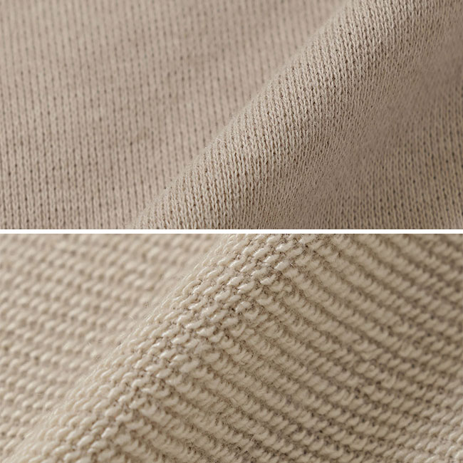特にサイドパネルはスパンフライスを二重にした贅沢な仕様で、ヴィンテージスウェットに見られるクラシックなディテールを再現しています。