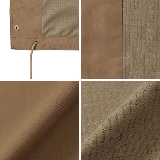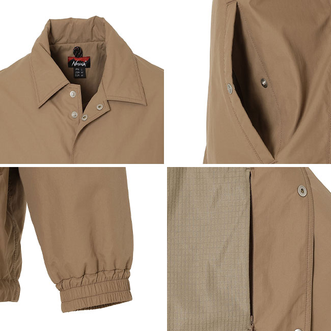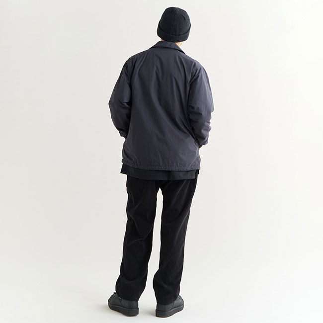 今年新たにNANGAが提案するコーチジャケットは、スタイリッシュな見た目と確かな暖かさを兼ね備えた一着。裏地にグリッド状の起毛トリコットを配し、襟とポケットには中綿を仕込むことで、軽やかさと保温性を両立しました。