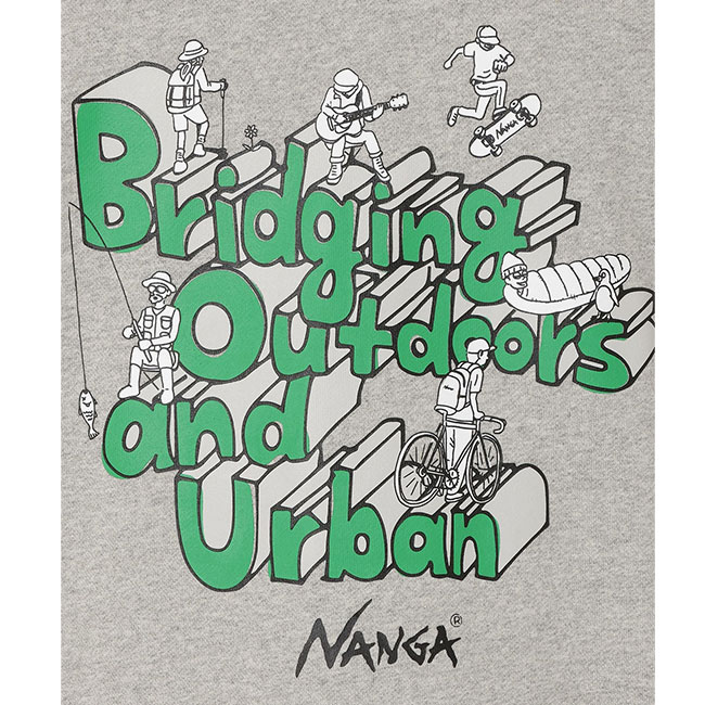 グラフィックデザイナー・木村俊彦氏による描き下ろしグラフィックをバックプリントに採用。シーズンテーマのスローガン「Bridging Outdoors and Urban」とともに、アウトドアを楽しむ人々の姿をハンドドローイングで表現しました。