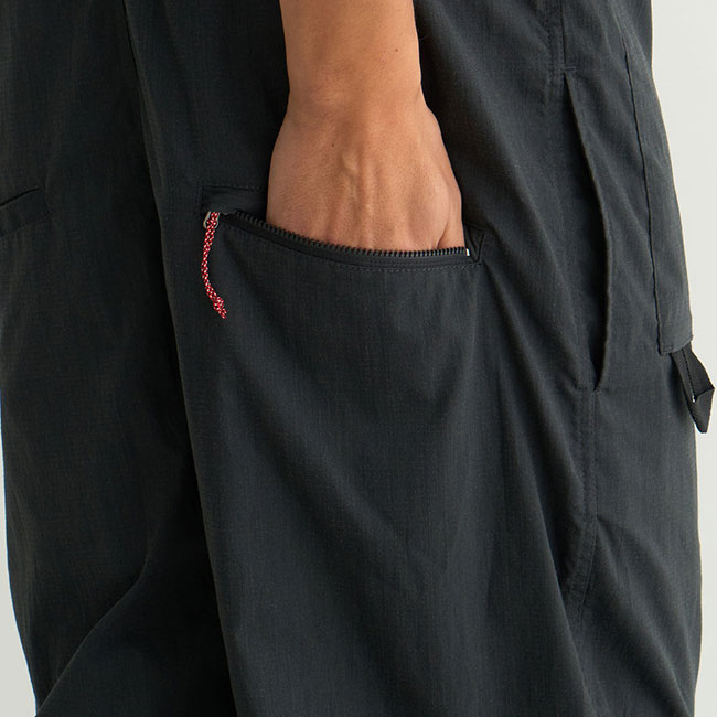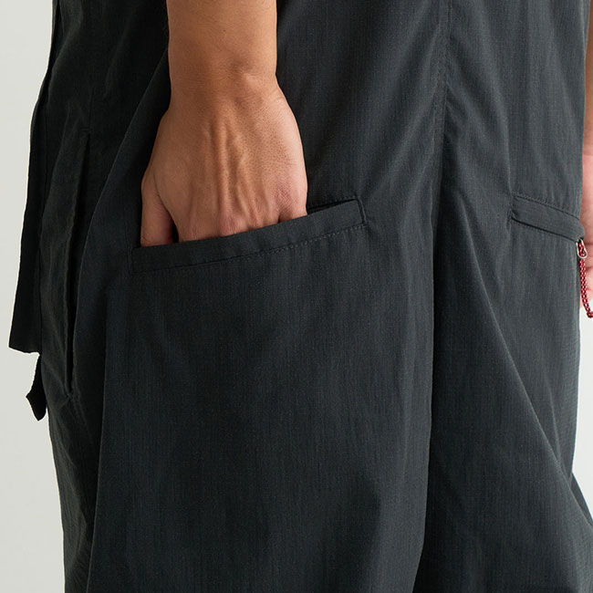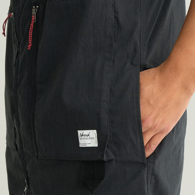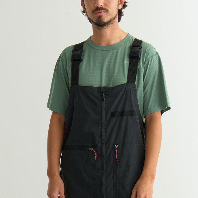 NANGAの難燃素材「HINOC RIPSTOP」シリーズから登場したオーバーオールは、アウトドアや作業シーンでの安全性と機能性を兼ね備えた一着です。焚き火やBBQなど、火を扱う場面でのリスクを軽減するため、火の粉に強い難燃素材を採用。