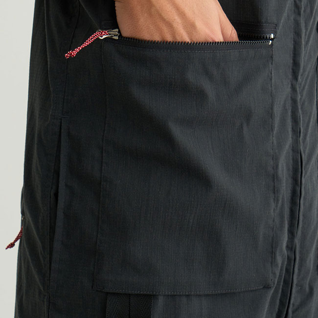 また、フロントには左右にファスナーポケットを配置し、ギアやツールをスムーズに収納できる仕様。