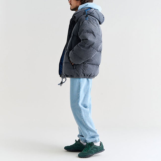 名前の由来となった「HIMA(雪)」のように、冬の寒さや雪の多い季節を快適に過ごすために生まれたのがヒマ ダウンジャケットです。アウトドア用の冒険ウェアではなく、あくまで日常生活の中で気軽に羽織れる定番ダウンとして企画されました。