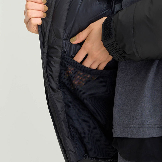 裏地には10dnのリサイクルナイロンを使用し、柔らかな着心地と高い保温効率を両立します。