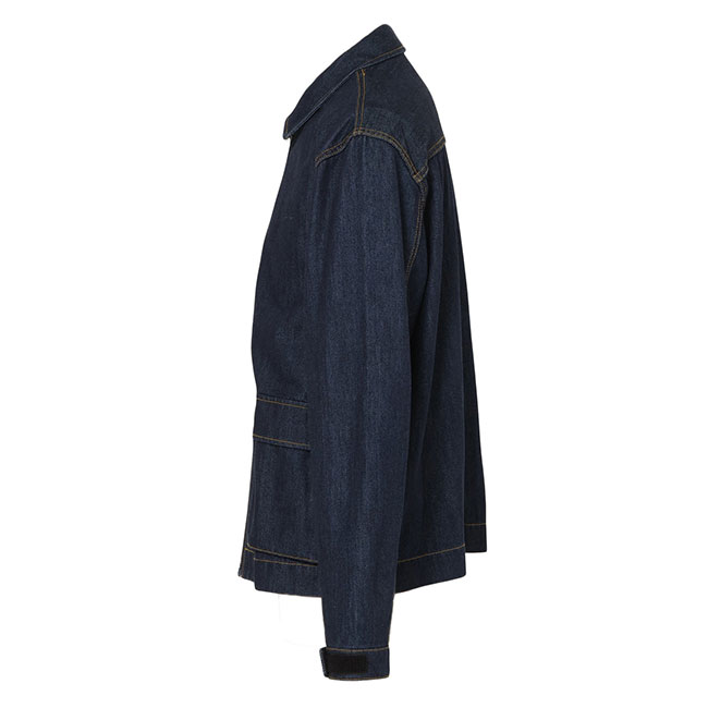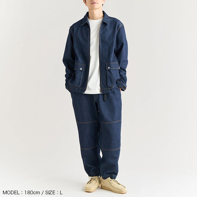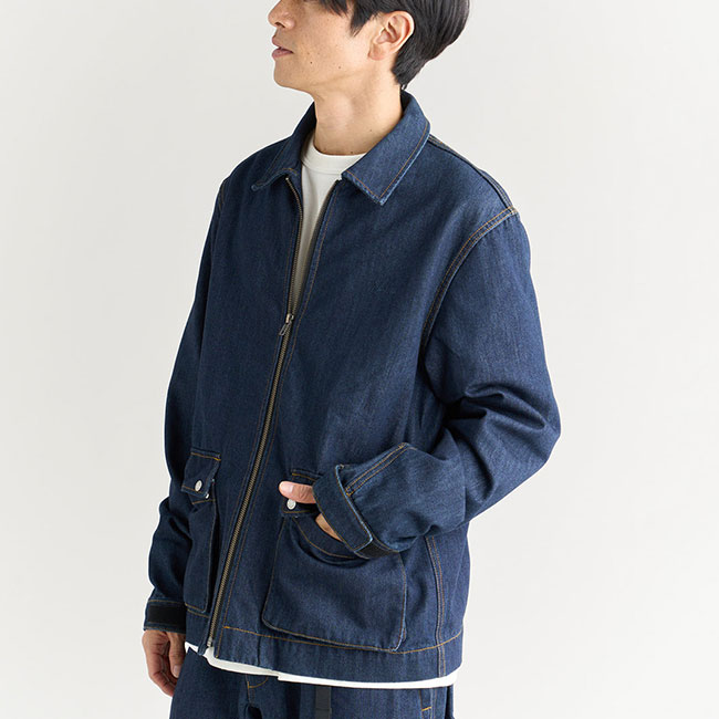 ブルゾンタイプで仕上げたデニムブルゾン。フロントはジップ仕様とし、着脱しやすく、レイヤードやシルエット調整もしやすい設計に。