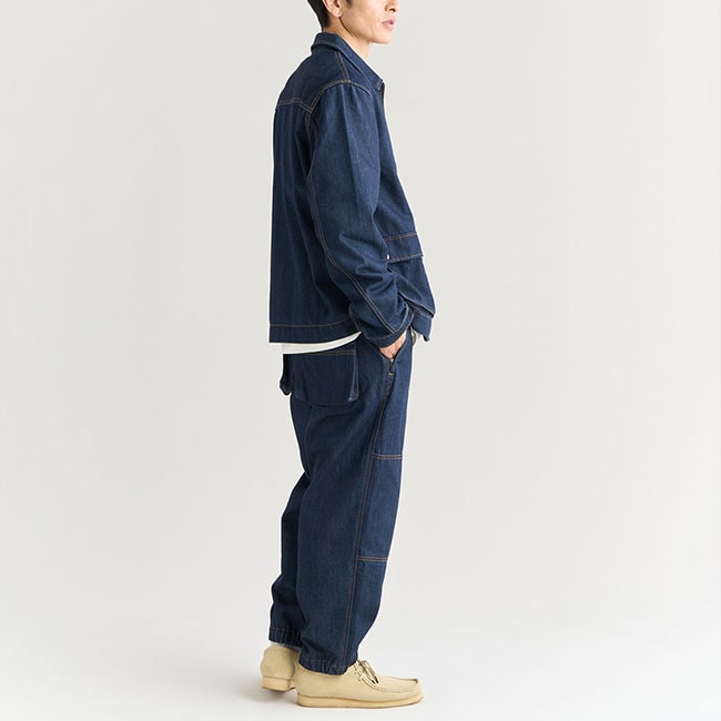 デニムらしい風合いを保ちながら、高い耐摩耗性と耐久性を備え、アウトドアシーンにも対応するタフさを実現しています。