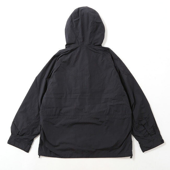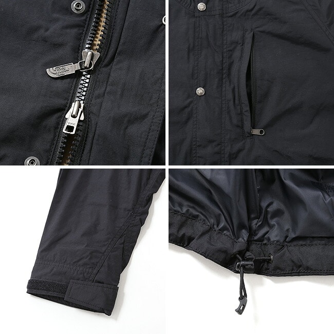 ポケットは左右サイドにマチ付きのフラップポケット、左胸にファスナーポケットのシンプルなデザイン。