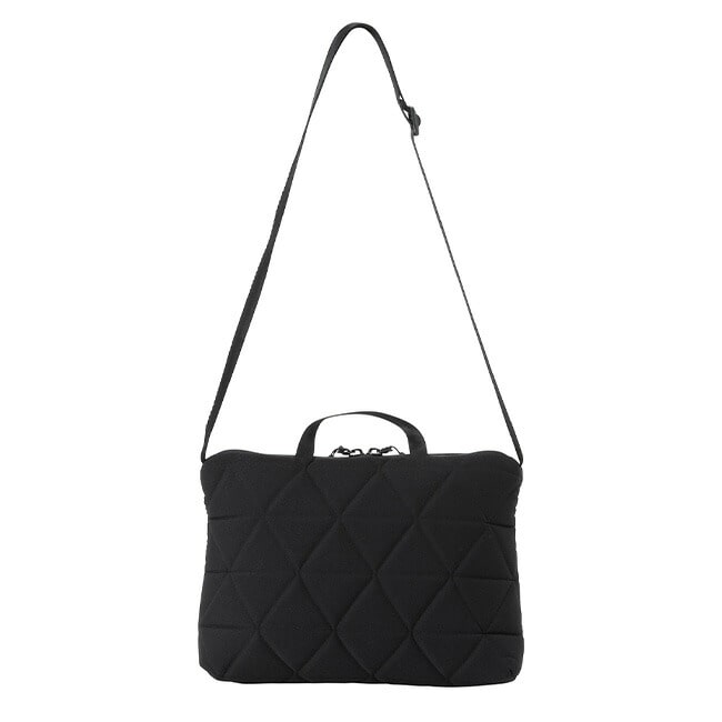 衝撃を緩和するクッション内蔵のエンボス加工を採用。ショルダーストラップは取り外しが可能です。