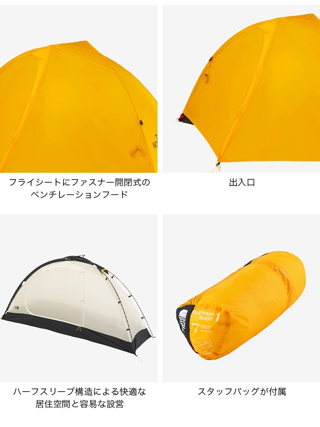 1人がゆったり寝られる幅90cmの室内に加え、広い前室をもつメインエントランスと、靴やバーナーなどの荷物を置けるサブスペースを確保。