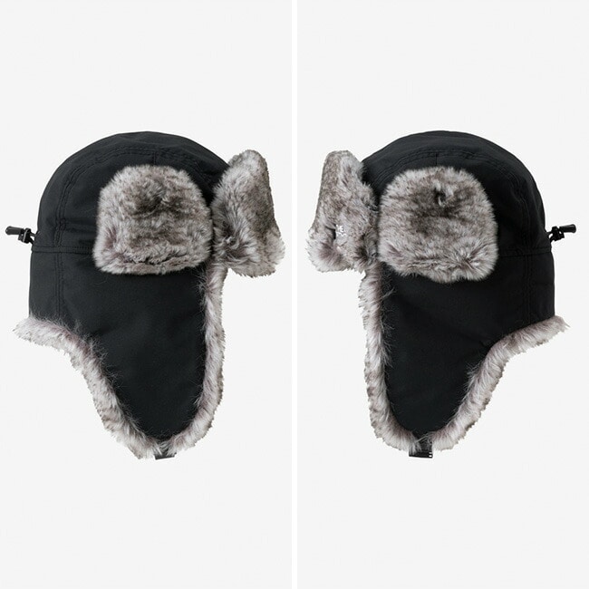 表地には防水透湿性に優れたナイロンオックス生地を採用。つば裏と耳当て部分のポリエステル素材のファーは、リアルファーのような色合いと肌触り。