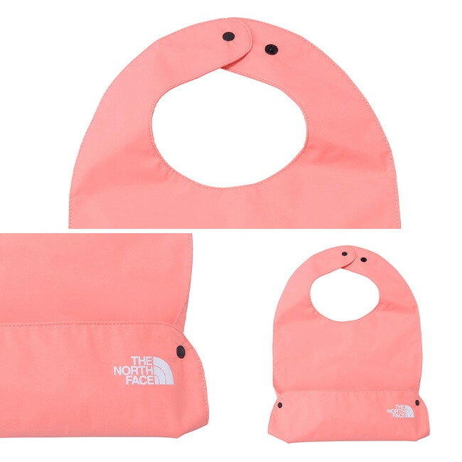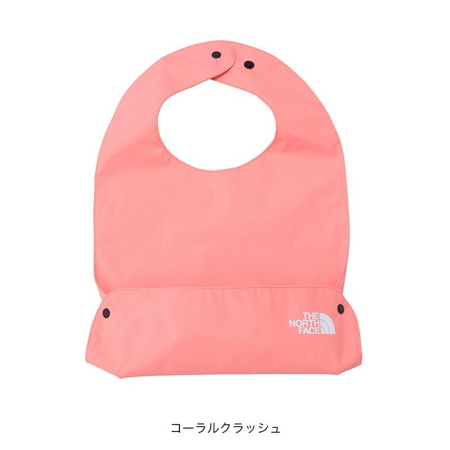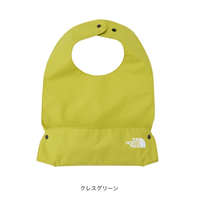 裾のドットボタンを留めると、食べこぼしを受けるポケットが組み上がる仕様です。ドットボタンをはずせば1枚の平たい布状になるので、洗濯しても乾きやすくイージーケア。