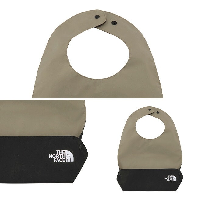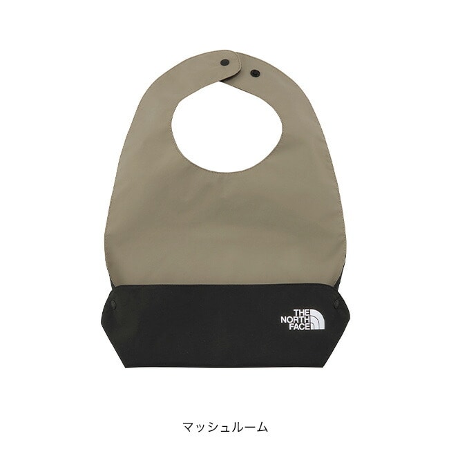 裾のドットボタンを留めると、食べこぼしを受けるポケットが組み上がる仕様です。ドットボタンをはずせば1枚の平たい布状になるので、洗濯しても乾きやすくイージーケア。