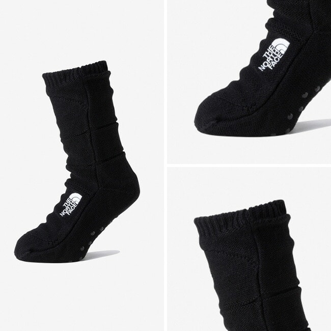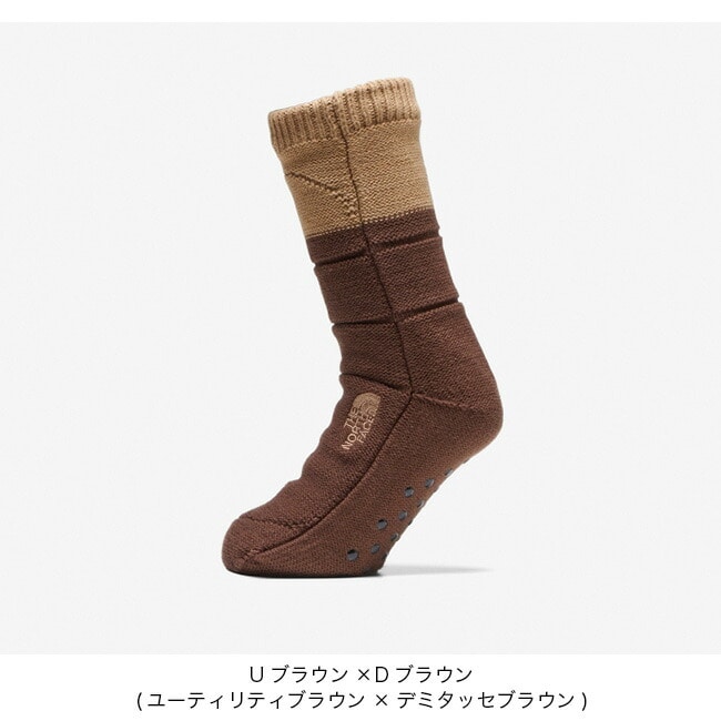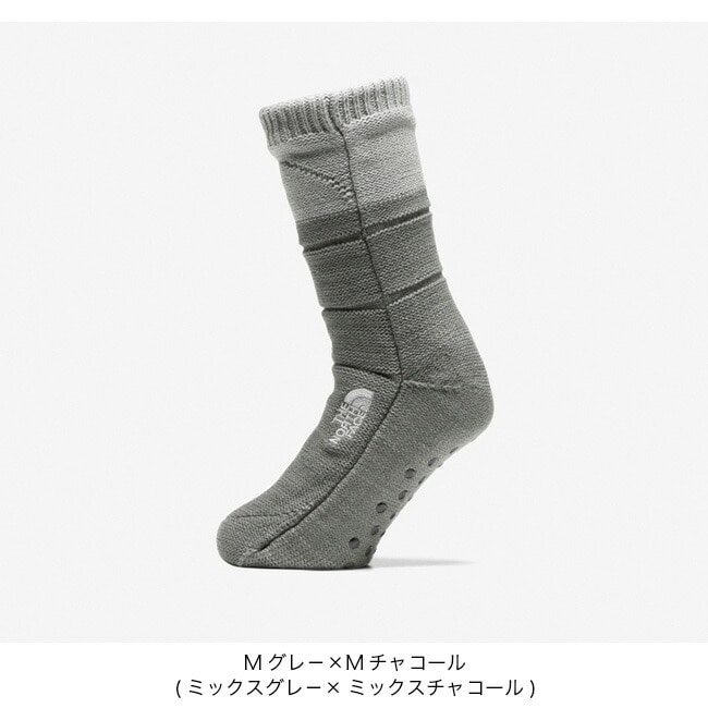 肌側にボアフリースを配し、見た目からも暖かさが伝わるボリューム感で仕上げました。足裏には滑り止めのプリントを施し、フローリングで歩きやすさを考慮。
