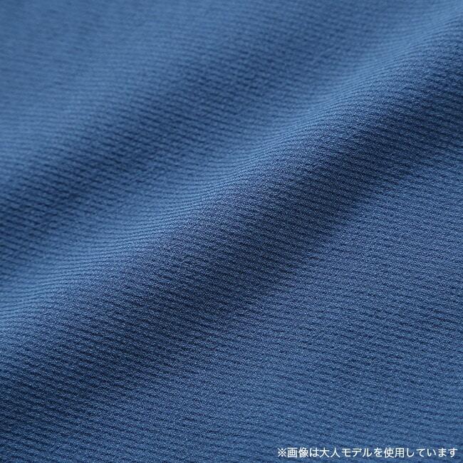 リサイクルポリエステルを一部使用した生地は、適度なシャリ感があり、さらりとした着心地です。独特のメッシュ構造を採用することで衣服内のムレを軽減し、高い通気性を実現しています。