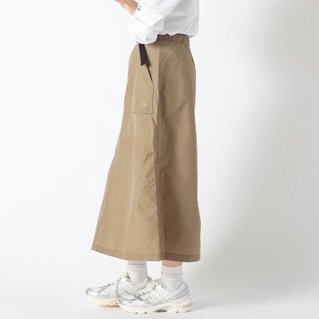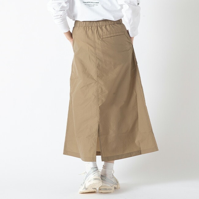 はっ水加工を施した軽量ナイロン素材を使用した、マルチユースのロングスカート