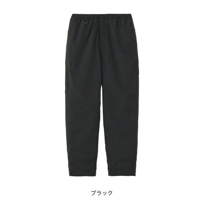 マットな質感のコットンライクポリエステル生地を採用したパンツ。中わたにはストレッチ性のある薄中わたを使用し、表地と裏地ともに伸縮性があるため、脚の動きにスムーズに追従します。