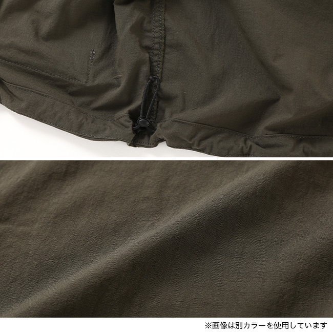 一重ながら質感のしっかりした生地で、シャツとしてもアウターとしても活用しやすいアイテムです。経糸にスパンナイロン糸、緯糸にフィラメントを使用したリップストップ生地は、光沢を抑えたマットな生地感が特徴で、天然素材のようなナチュラルな風合い。