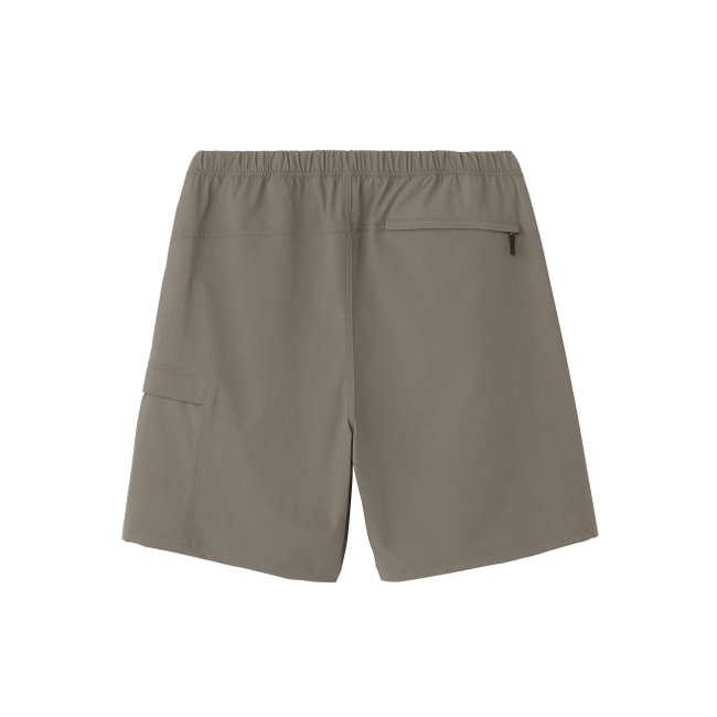 一部リサイクルナイロンを使用したリップストップ生地はストレッチ性と適度なハリ感があり、はっ水加工を施しているため多少の雨は弾きます。脚さばきが快適な丈感で、両サイドには地図が入るサイズのスラッシュポケット、左脇にはファスナー付きのカーゴポケット、さらに右ヒップにもファスナーポケットを配置し、収納力を高めています。